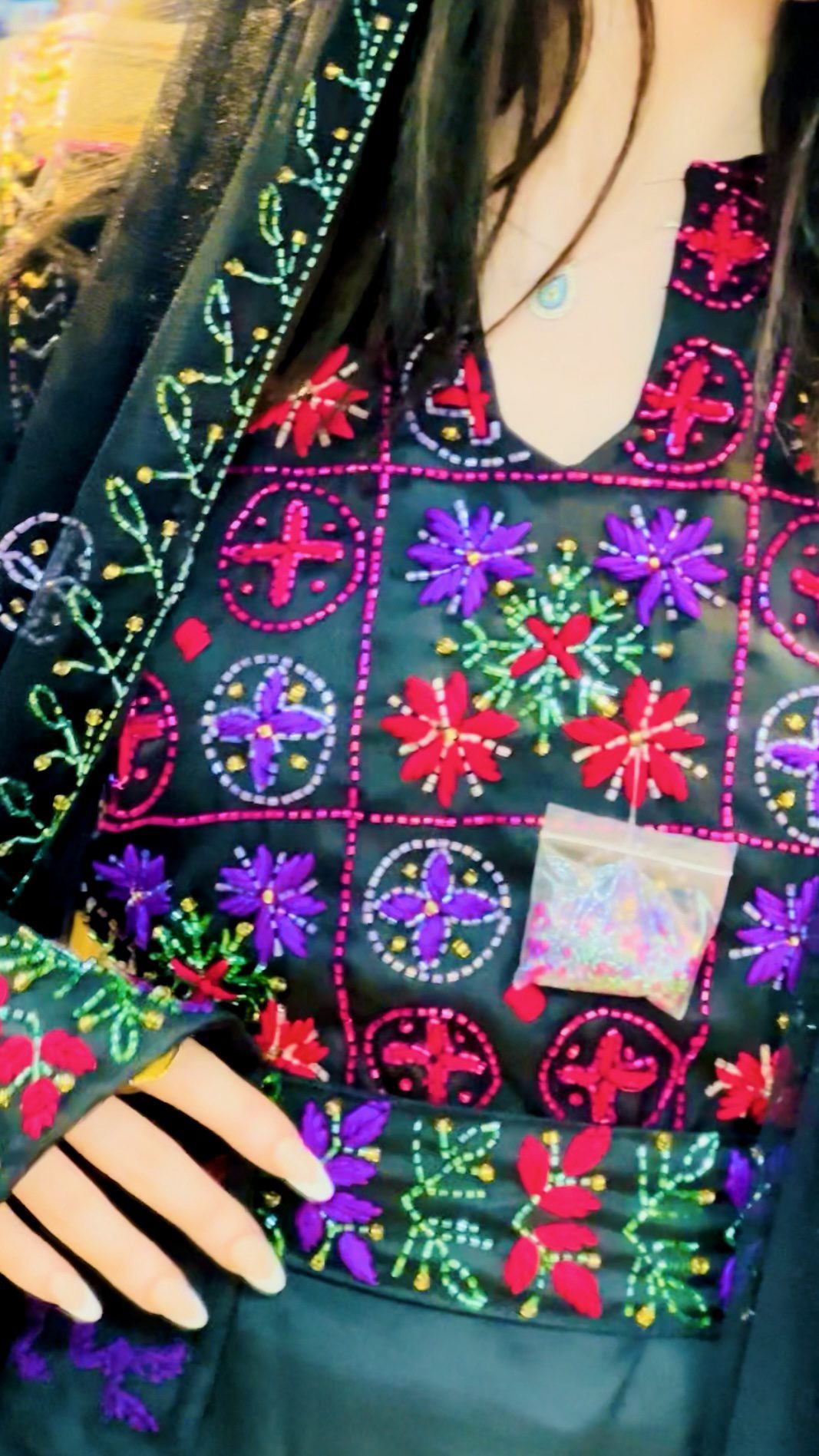 ثوب شك خرز يدوي مع تطريز حرير dmc
