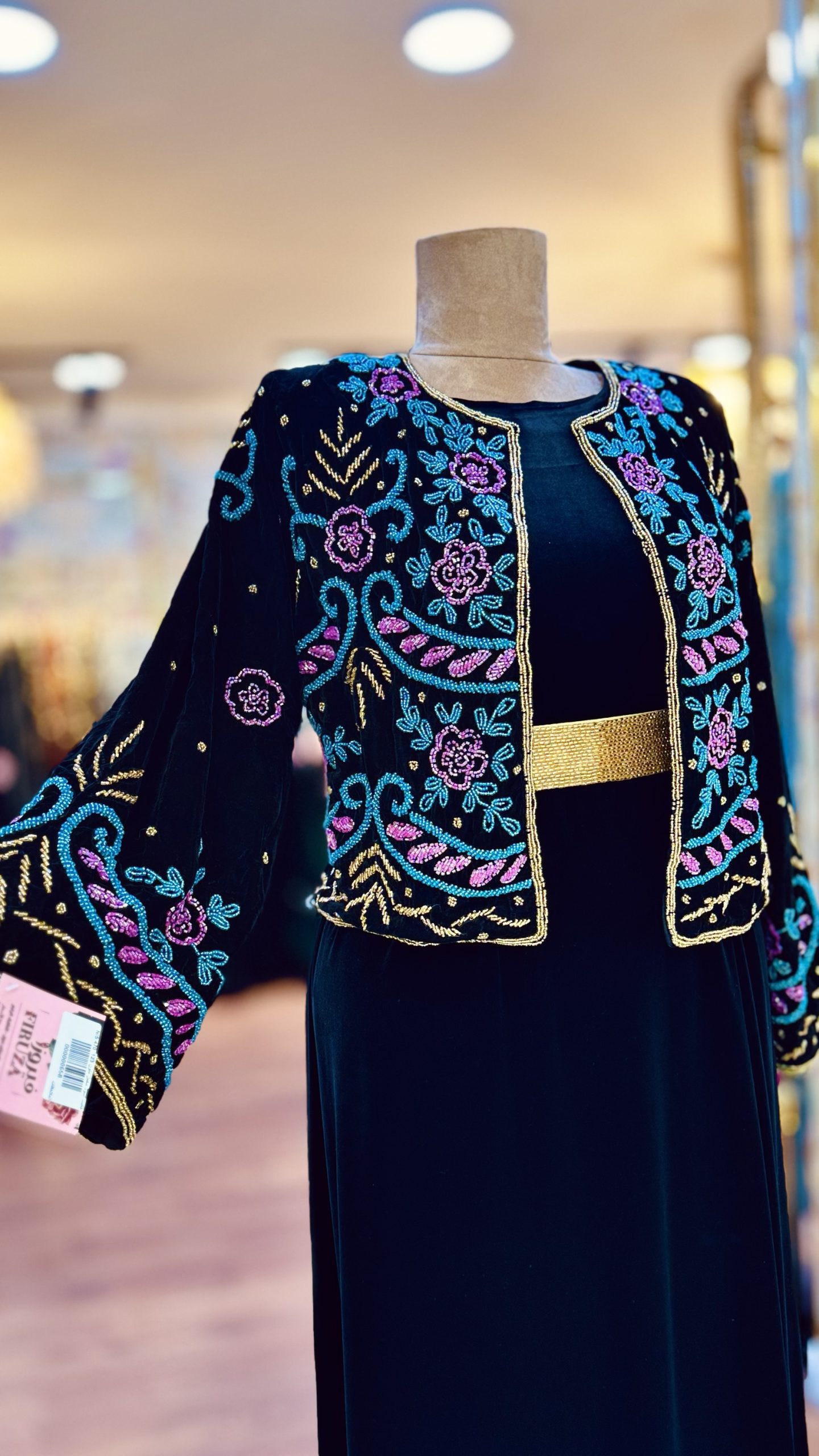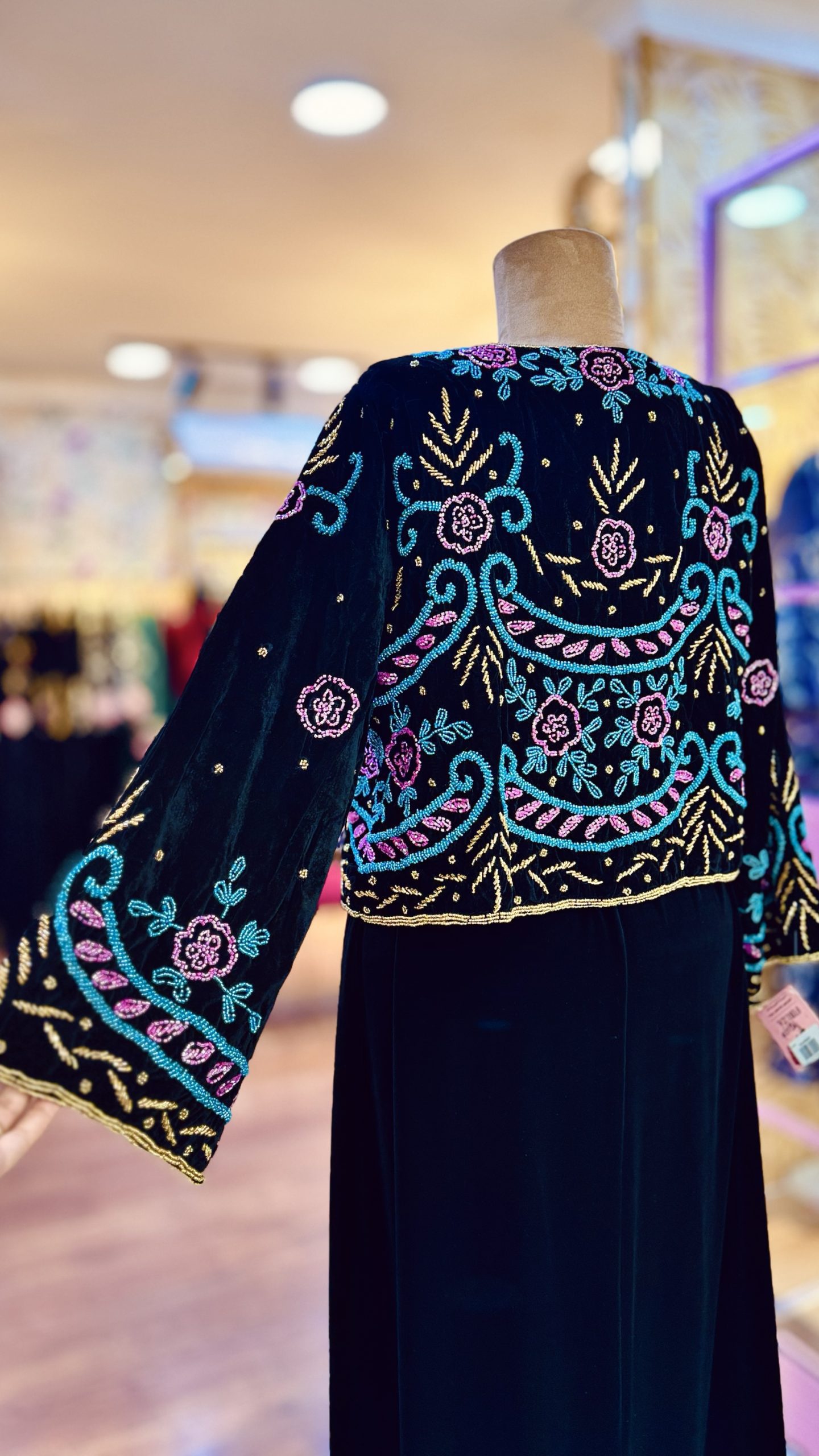 جاكيت فاخر جدًا مشكوك يدويًا من الخرز على مخمل عالي الجودة